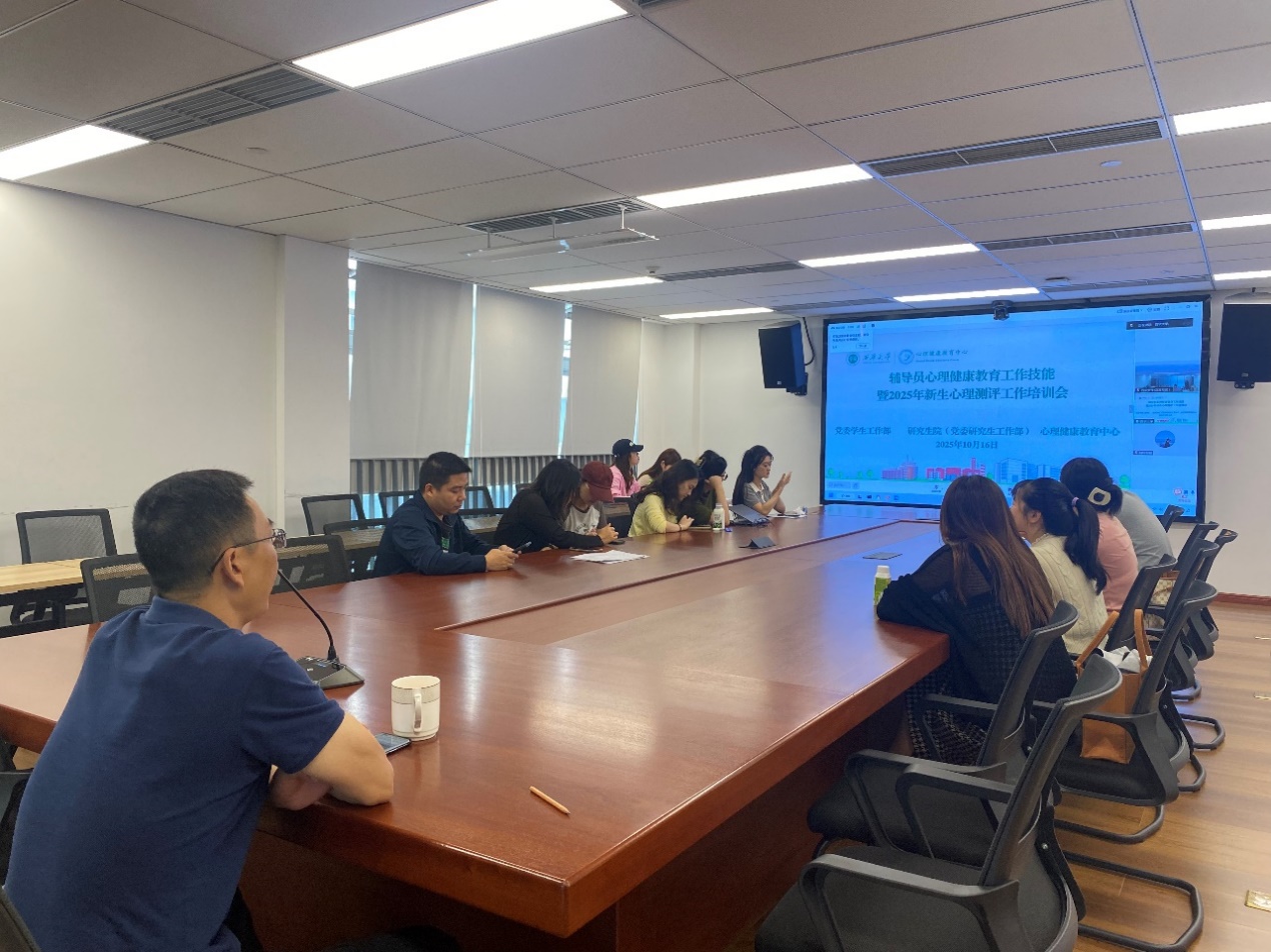 2025年10月16日上午9:00-12:00,由党委学生工作部、研究生院(党委研究生工作部)、心理健康教育中心主办的“辅导员心理健康教育工作技能暨2025年新生心理测评工作培训会”,采用线下线上相结合方式,在西华大学郫都校区办公楼101会议室、宜宾校区行政楼502会议室同步举行,西华大学党委常委、副校长王永杰教授,党委学生工作部杨万能副部长、陈小骄副部长,研究生院(党委研究生工作部)苏文明副院(部)长、古羽佳老师,各学院各校区学生心理健康教育指导教师,2025年新进辅导员,2025年新生辅导员(班主任),心理健康教育中心有关人员,共计100余人参加了培训会,会议由心理健康教育中心主任王强主持。