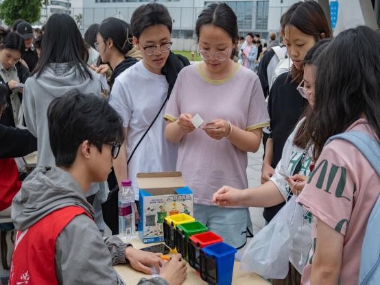 活动以自我认知、情绪管理、人际交往及释放压力为核心,设置了脑力挑战、艺术疗愈、快乐解压三种类型。脑力挑战类游戏包含心理知识、党史校情、趣味公考问答,艺术疗愈类包含制作干花书签、情绪垃圾桶、阳光心愿墙,快乐解压类包含拯救企鹅、青蛙吃豆、德国“心脏病”、欢乐投壶,共10个游戏打卡点位,同学们在活动入口处领取积分表即可参与。在所有点位完成打卡获取积分后,可凭积分兑换相应奖品。