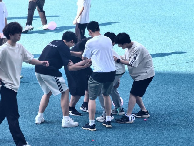 五月的晴空下,和煦的阳光洒满操场,为活动增添了温暖。下午四时许,活动以松鼠与大树游戏拉开序幕,同学们在角色互换中快速建立默契;随后进行的呼啦圈同心传递展现了团队的协作能力;猜歌词环节以轻松幽默的方式活跃了现场气氛;在优点'爆破'计划中,同学们通过互相踩气球的形式,发现并记录彼此的闪光点;最后,活动以心翼启航纸飞机放飞环节圆满收尾。整场活动环环相扣,同学们全情投入,在轻松愉快的氛围中收获了友谊与成长。
