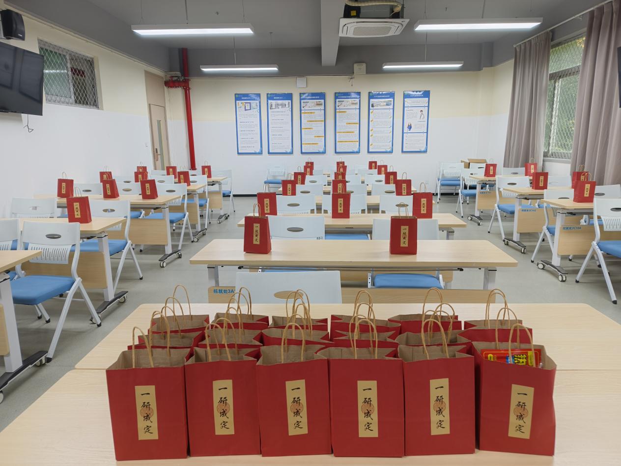 最让同学们感到惊喜和温暖的,是学院精心准备的“考研温暖加油包”。每一份礼物都承载着学院师生深厚的情谊与美好的祝愿。巧克力:寓意“巧”克难关,“力”量满格,助你考场思维敏捷,精力充沛。暖宝宝:寓意学院的温暖关怀始终相伴,为你“宝”驾护航,让奔赴考场的路上和紧张的考试中始终暖意融融。笔:寓意“笔”出锋芒,下笔有神,一挥而就,书写锦绣前程。小柿子挂件:寓意“柿柿”(事事)如意,期盼备考及考试过程一切顺利,心想“柿”成。小橙子挂件:寓意马到“橙”功,一举夺魁,愿每一位学子都能收获成功的喜悦。娃哈哈饮料:寓意“哈”哈一笑,缓解压力,轻松上阵。