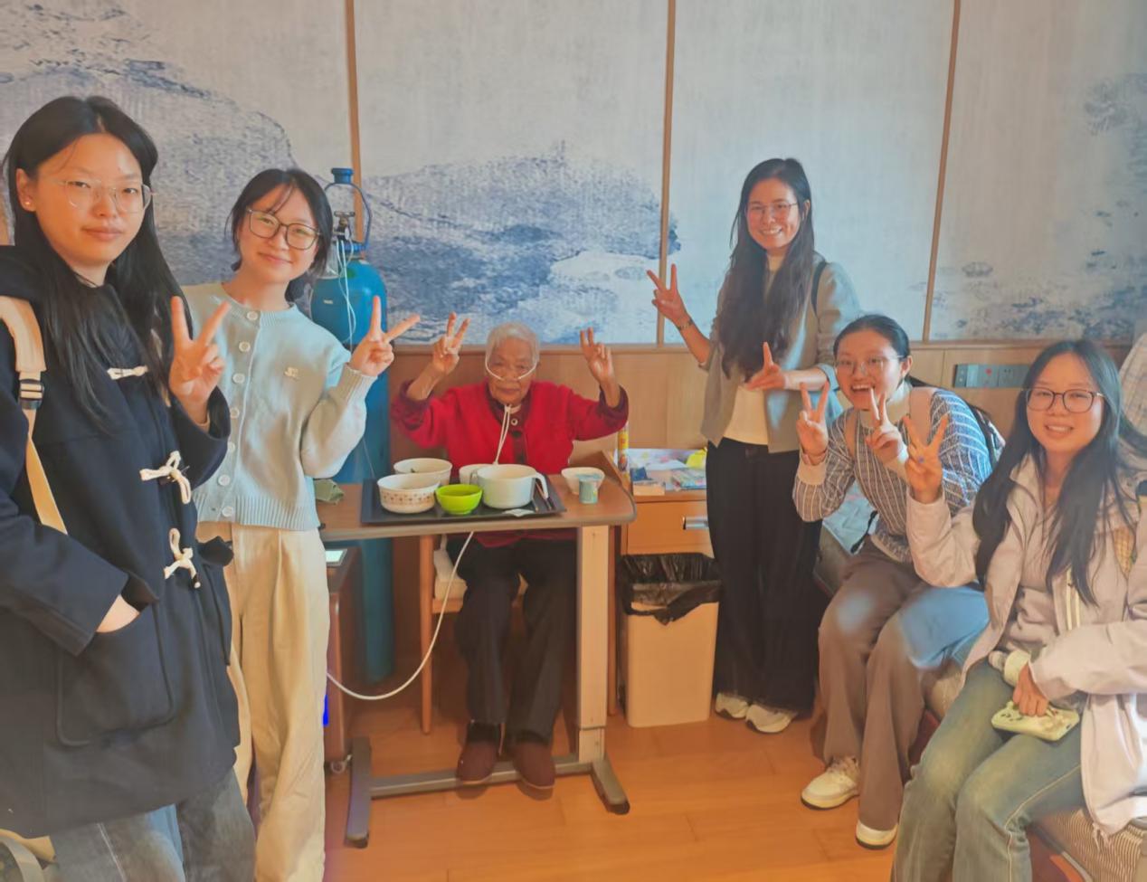 在护理服务环节,大家主动走近阿尔茨海默症老人群体,以拉家常、忆往事等亲切方式开展互动交流,在陪伴中传递温暖,在沟通中给予慰藉,用青春活力为老人们的生活注入生机与乐趣。