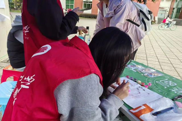 线下摆点活动现场设置了多个互动环节,将心理健康元素融入环保宣传。通过知识问答、案例讲解、趣味游戏等方式,不仅普及了节能知识,也让参与者在轻松的氛围中释放情绪、提升心理参与感。活动中设置的“低碳创意标语大赛”“节能减排连连看”“环保知识问答”等环节,激发了师生的创造力和协作意识,增强了集体归属感与心理满足感。现场还安排了专人解答学生关于节能减排的疑问,并引导大家分享对绿色生活的感受与建议,营造了开放、包容、积极的心理氛围,有效缓解了日常学习压力,提升了整体参与体验。