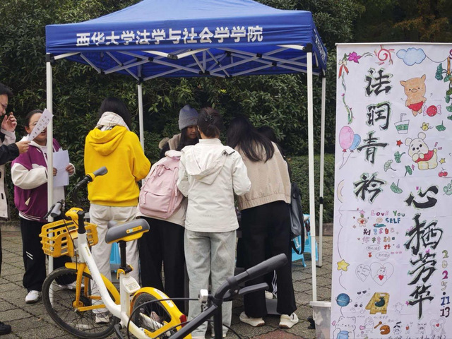 11月13日,为普及法律常识、提升心理调适能力,法学院(知识产权学院)权益部在明德广场举行了以“法润青衿·心栖芳华”为主题的摆点活动,吸引众多同学与小朋友们的踊跃参与。