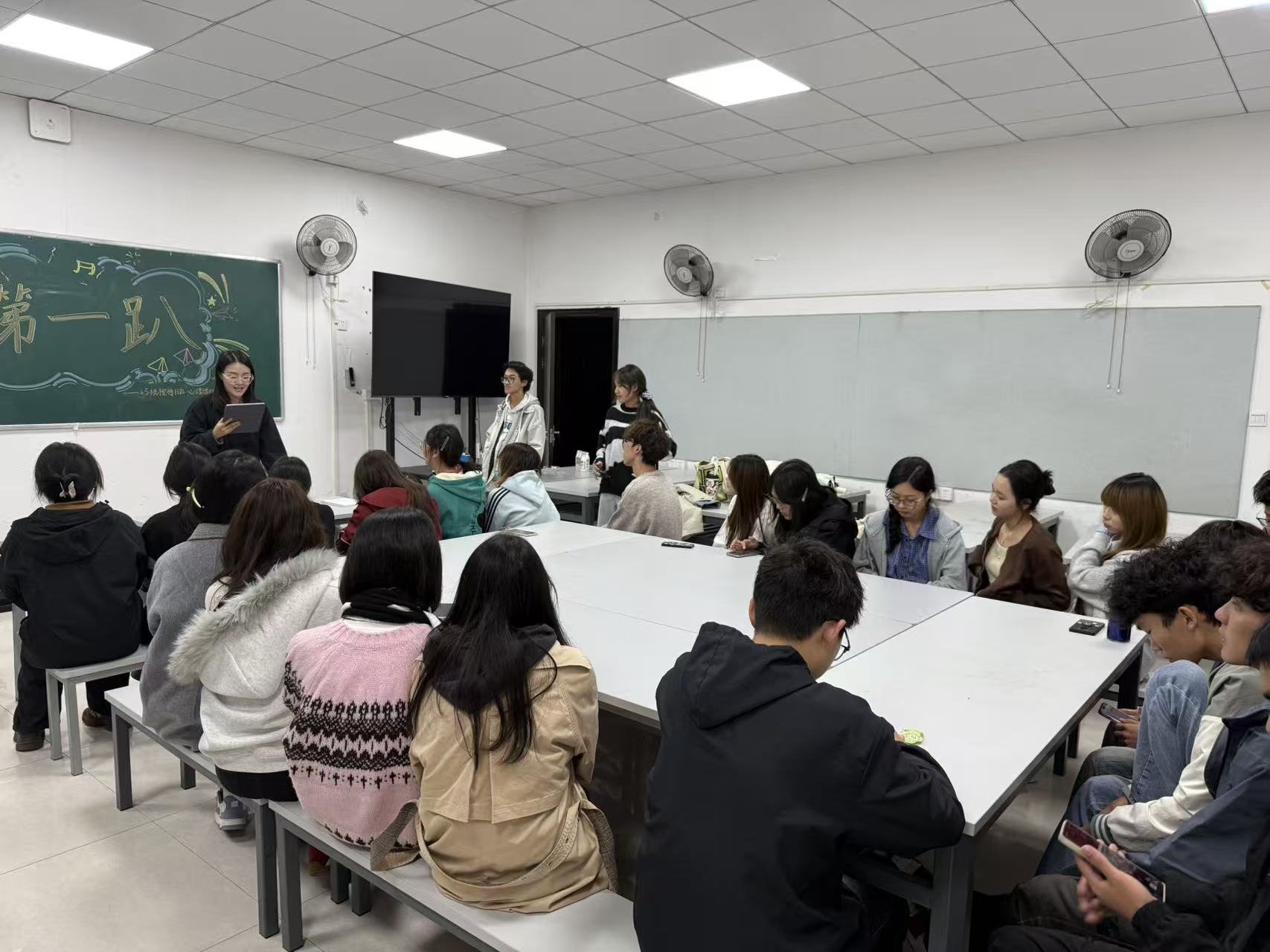 晚上7点,活动正式拉开帷幕,主持人张博慧以热情洋溢的开场白点燃现场氛围。“没有点名与测验,今晚只有快乐与陪伴!”她的话语瞬间拉近了同学间的距离,让原本略带羞涩的教室逐渐充满欢声笑语,也让“把‘同学’升级为‘伙伴’”的活动初衷,成为在场每一位同学的共同期待。
