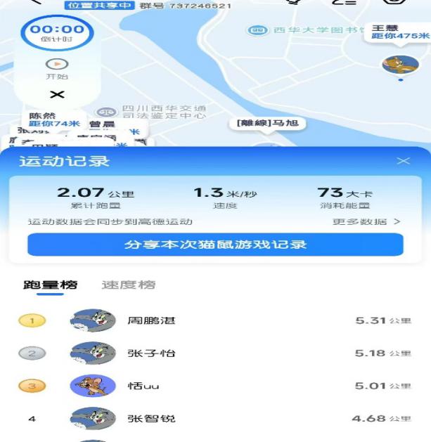 活动规则将参与者随机分为“猫”和“老鼠”两大阵营,在设定的安全区域内通过高德地图共享实时位置展开追逐。独特之处在于深度融入心理建设元素,活动开始前,组织者先引导大家完成简单的团队破冰与情绪分享,鼓励同学们将生活中的“压力源”象征性代入角色。游戏过程中,不仅设置了需团队协作完成的情绪补给任务,还穿插正念呼吸暂停休整环节,让激烈奔跑的“老鼠”与专注搜寻的“猫”都能随时停下脚步,在片刻宁静中学习紧张氛围下的自我调适。