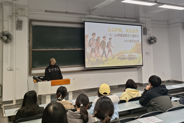 为帮助大三学子缓解学业、就业压力,筑牢心理健康防线,近日,23级英语1班以“心灵护航,从容逐梦”为主题的心理健康教育班会如期举行,班会由班级心理委员主讲,全体同学参与。