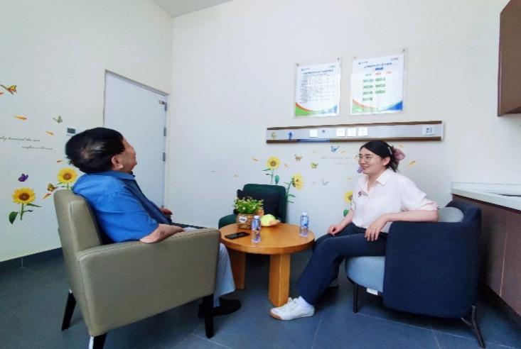 活动伊始,太保家园养老机构王达经理详细介绍了太保家园自理区和护理区有心理困扰居民的基本情况。随后,高倩云针对居民进行了心理干预和帮助,为他们提供了情感支持和心理疏导。除了居民的心理帮扶,高倩云还与养老机构的工作人员进行了深入的沟通交流,共同探讨如何从社会心理服务的角度,为太保家园的所有居民提供更全面的心理健康服务。